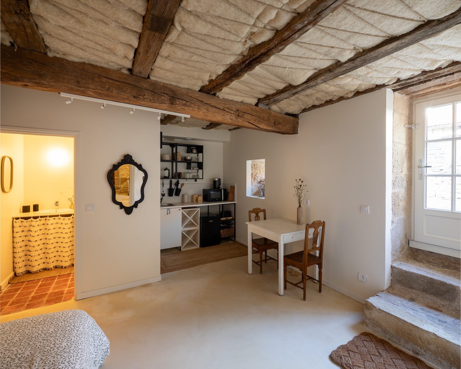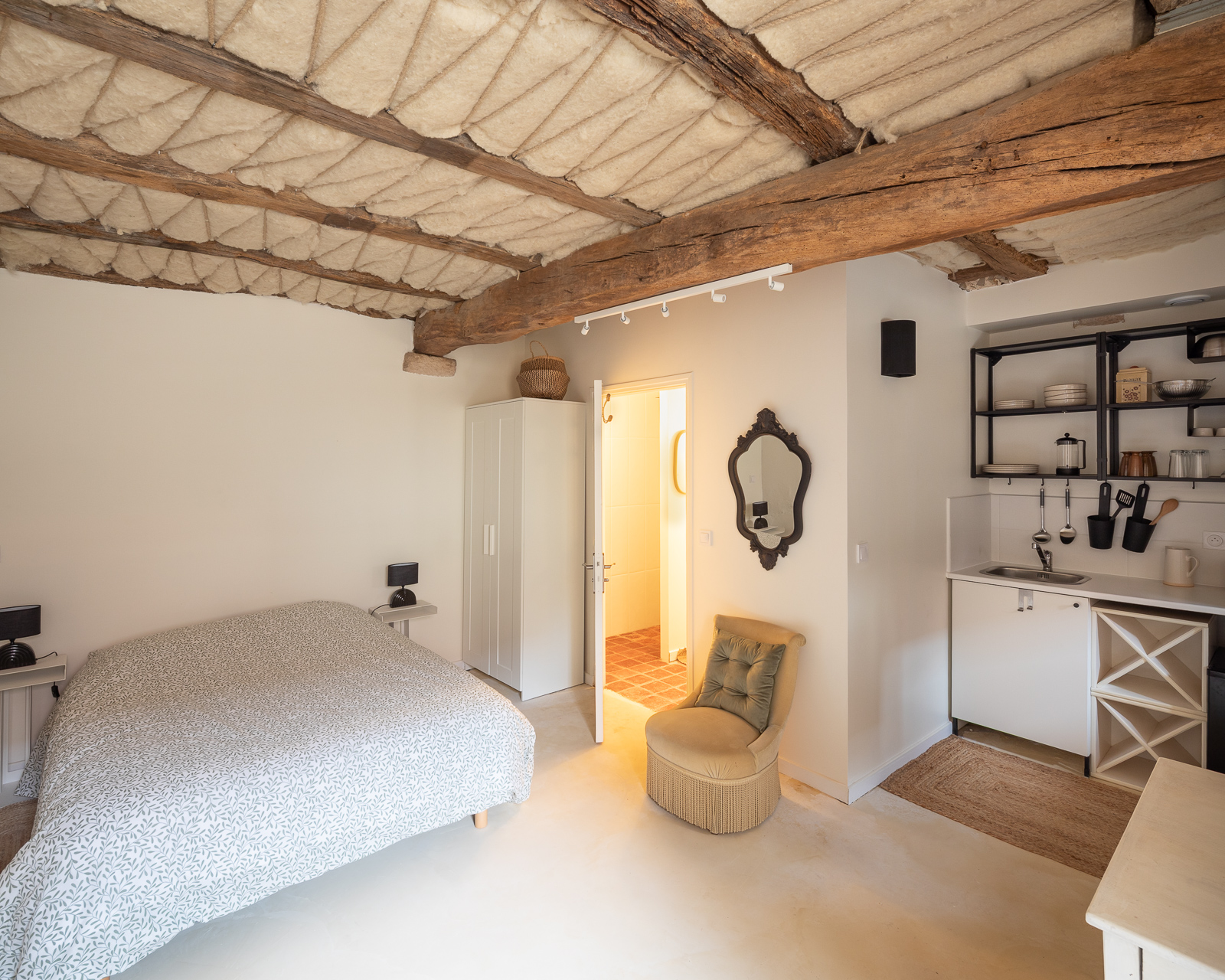 Niché au rez-de-chaussée d’une maison, ce petit studio en campagne bourguignonne a été repensé comme un lieu cocon et paisible. La rénovation a privilégié des matériaux naturels et bruts, pour créer un espace chaleureux, authentique et respectueux de son environnement.
