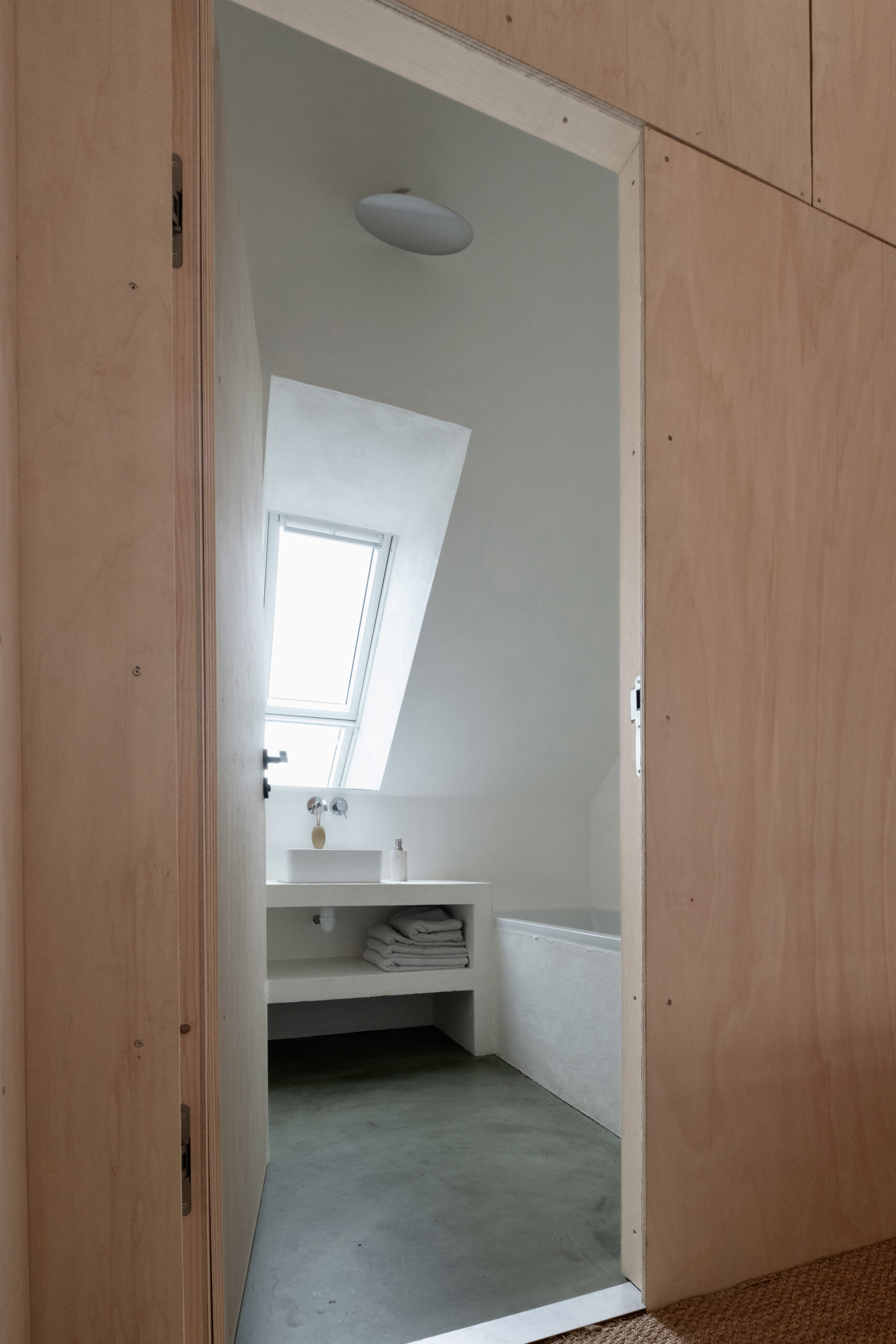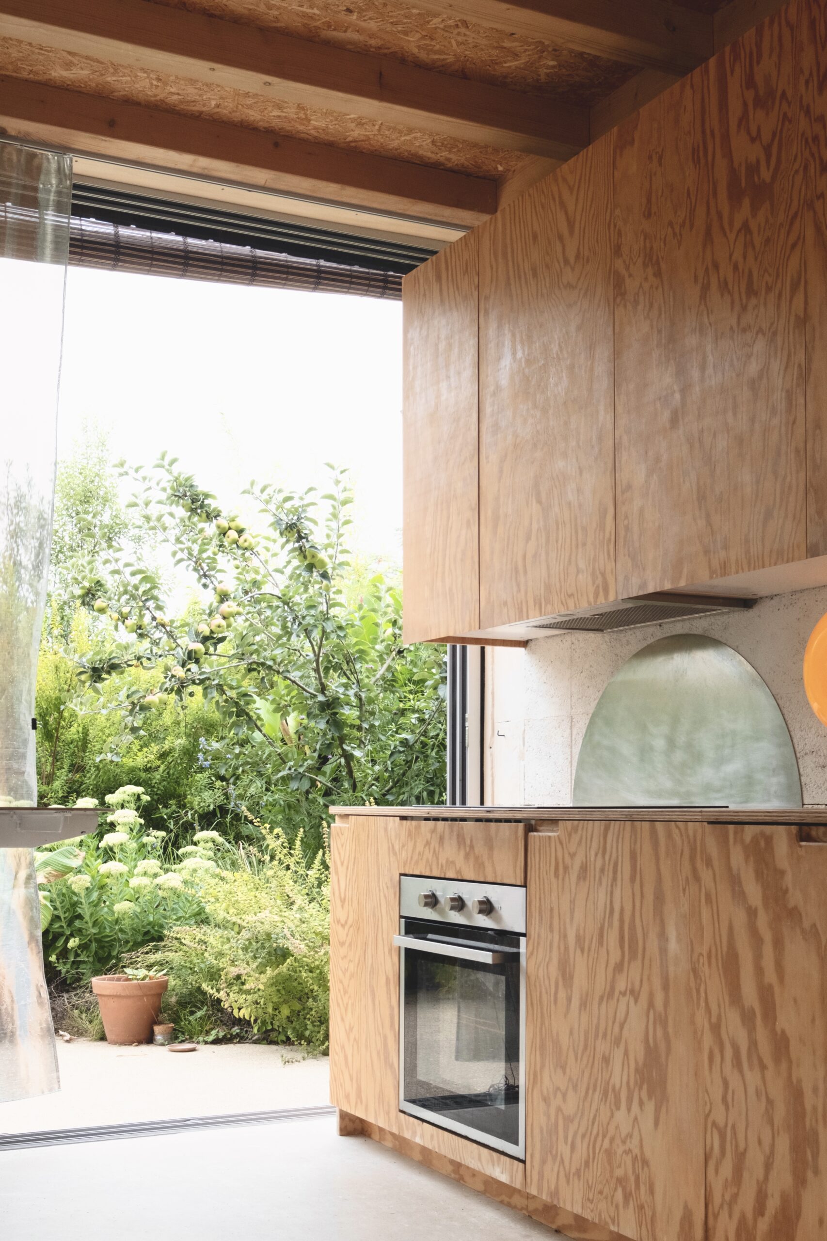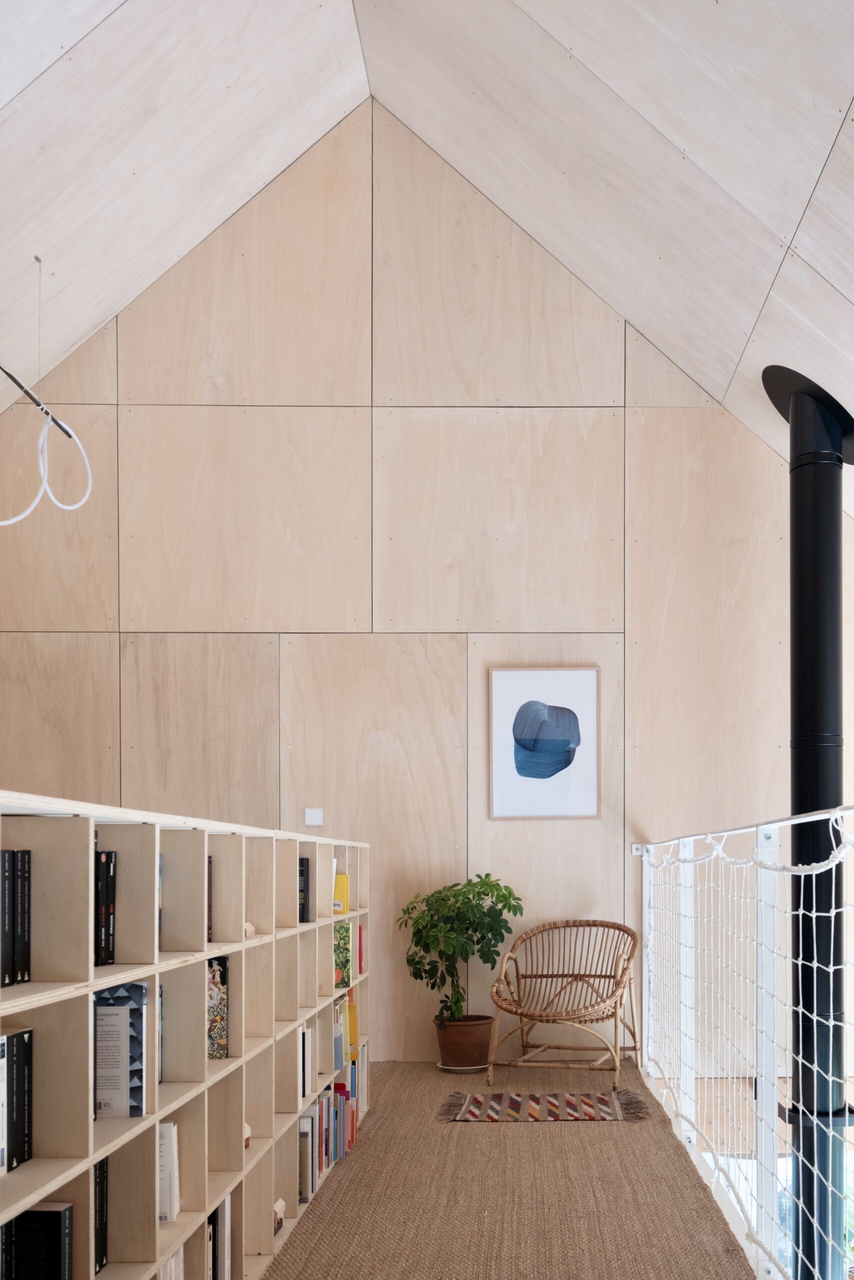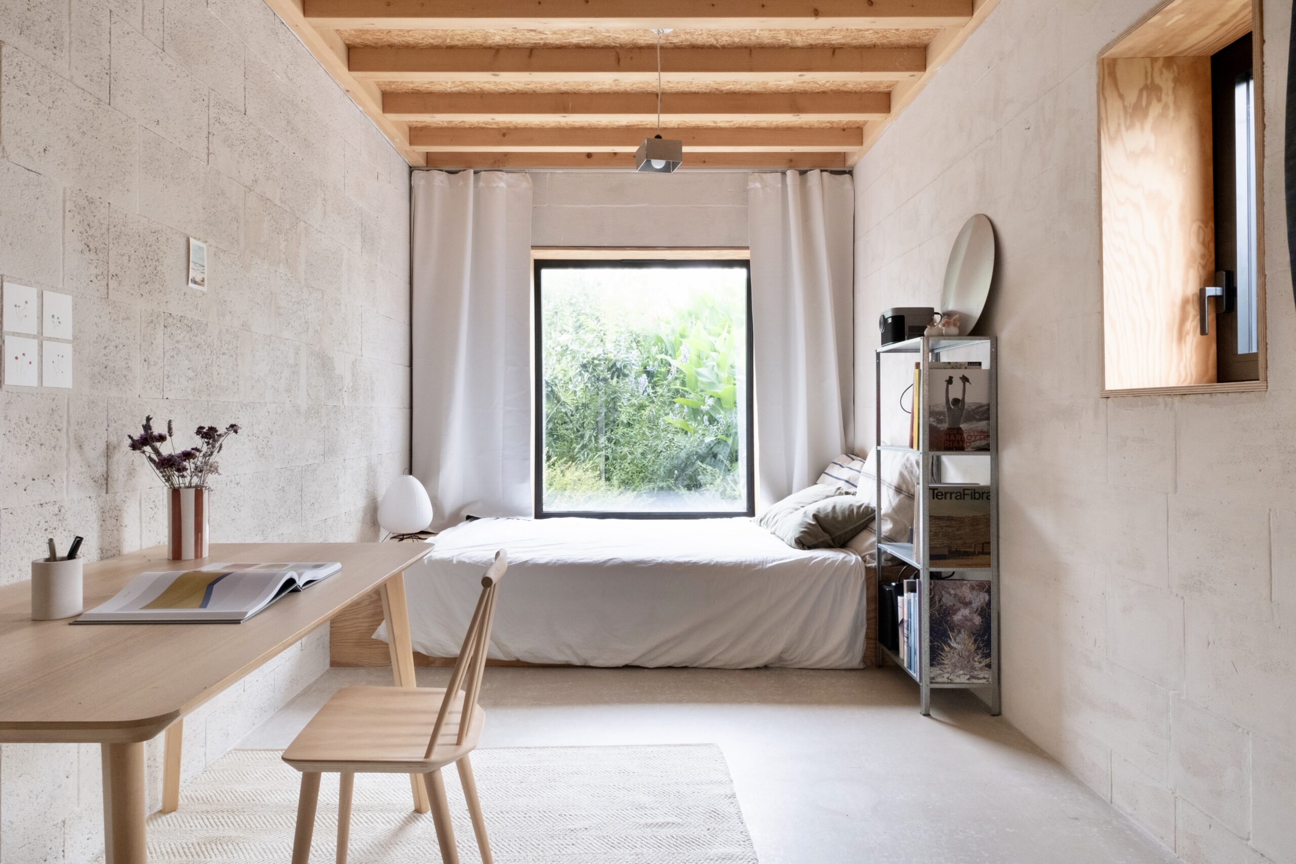 L’architecture revisite le pavillon traditionnel avec une écriture contemporaine : béton, verre, bois et métal s’associent dans une esthétique sobre et élégante. L’étage, en ossature bois revêtu de panneaux de peuplier, unifie murs, rampants et portes, apportant chaleur et cohérence à l’ensemble.