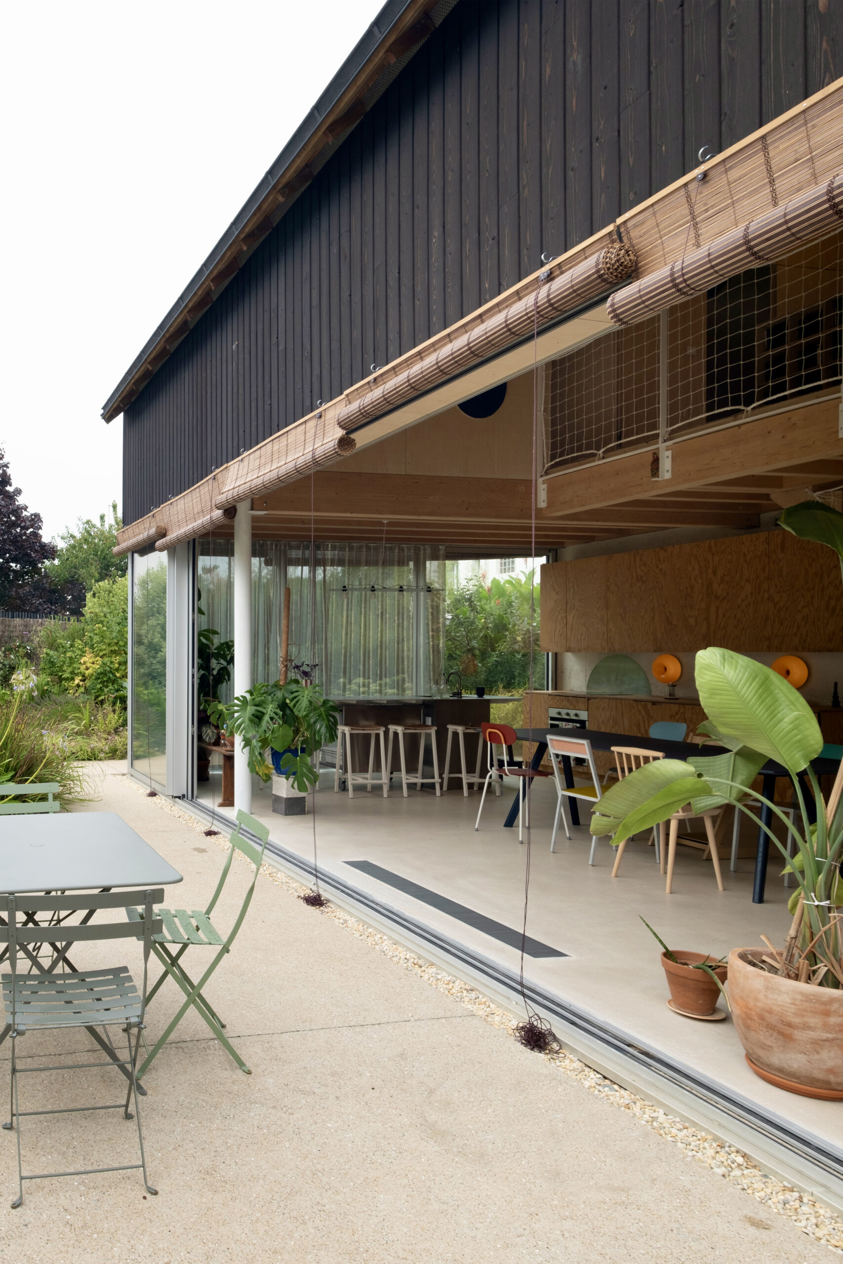 Pensée pour une vie conviviale et apaisante, la maison propose une répartition fluide entre espaces de partage et d’intimité, en harmonie avec le jardin et la nature environnante.